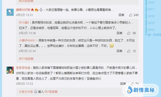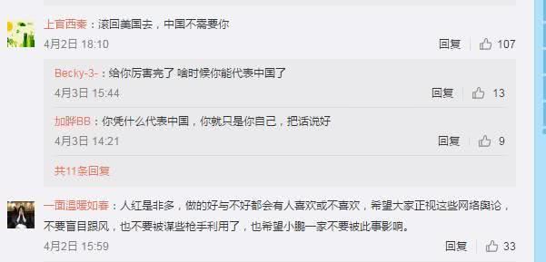 李小鹏实力护妻,也有些网友并不买帐,质疑热点依旧集中在“明明会中文却不说”,“上中国节目,赚中国人钱,却说英文显示优越感”等等。即便是李小鹏一一做出了具体回应,依旧有网友不依不饶的评论。
