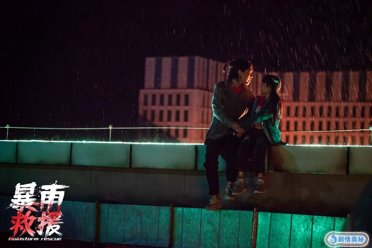 其次是“暴雨”的展现,雨戏对导演的场面调度和摄影师的拍摄都有非常大的难度,因为下雨天不能拍电影,雨戏都会选择人工降雨。电影中有两场雨戏难度大、完成度高,一场是劫匪抢包之后的那场追逐,中途穿过一条大路,翻下栏杆后又到了另一条路,接着被车撞倒,场景跨度大,拍摄难度可想而知;另一场是楼顶对峙,没想到会选一个真的楼顶拍,在楼顶拍雨戏,又完成高空吊坠,很想问问导演是怎么拍的。