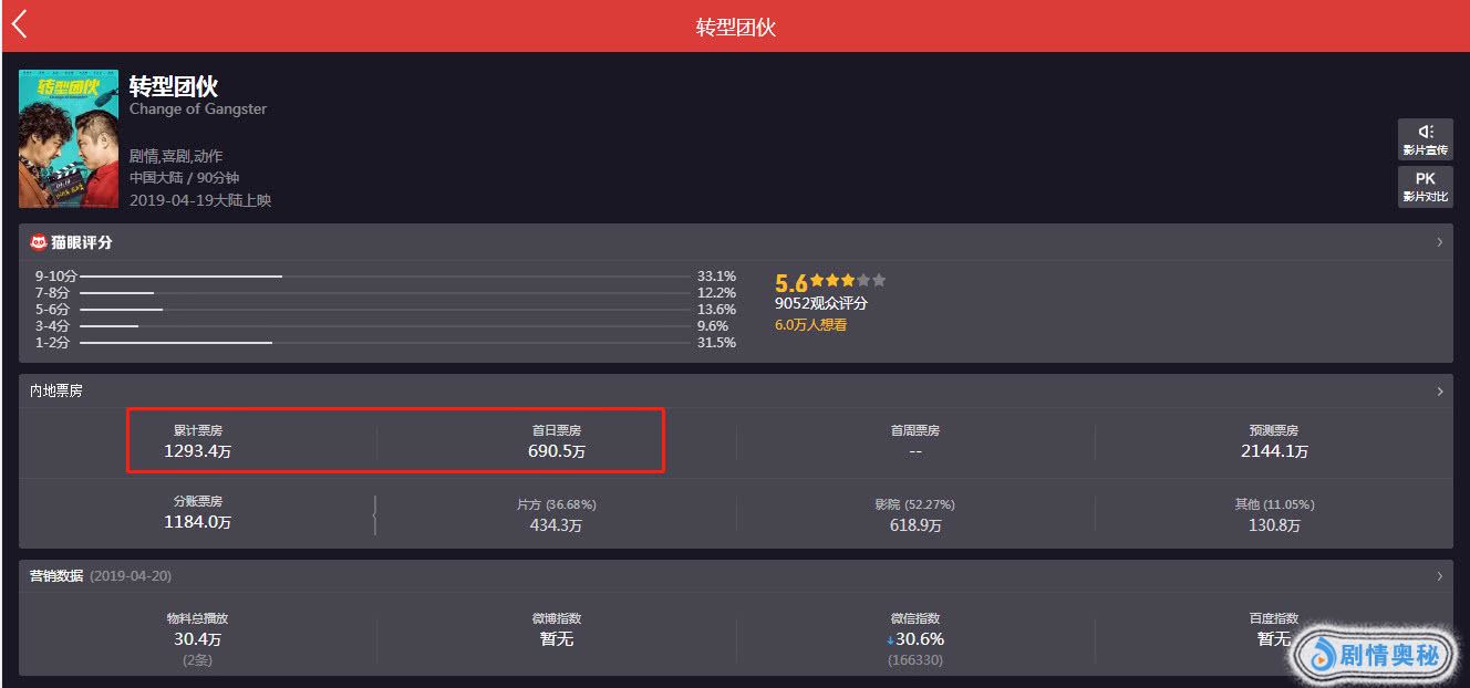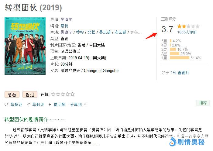 可惜的是,好景不长,在错过“影帝”称号之后,原本观众还指望吴镇宇自导自演的电影《转型团伙》能够再次获得观众好评。但是,从影片4月19日上映情况看,该片不仅没有能够得到观众认可和好评,反而在票房上口碑上双双扑街。