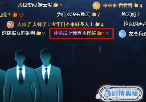 首先我们先来说第一条弹幕,就是“皮衣阿德和孙勇可惜了哎”。发这个弹幕的小伙伴心里是很失落的,其中说的就是王德才和孙勇这两人,但是他们都没有来参加国际赛。因为大家都知道王德才和孙勇是鲍橒站队的,但是在上一期鲍橒的站队输掉了比赛,所以站队中的队员也没有来参加国际赛。所以这个网友发的这个弹幕心里也是对这两个人感到很可惜,看来心里是想让王德才和孙勇来参加比赛的。