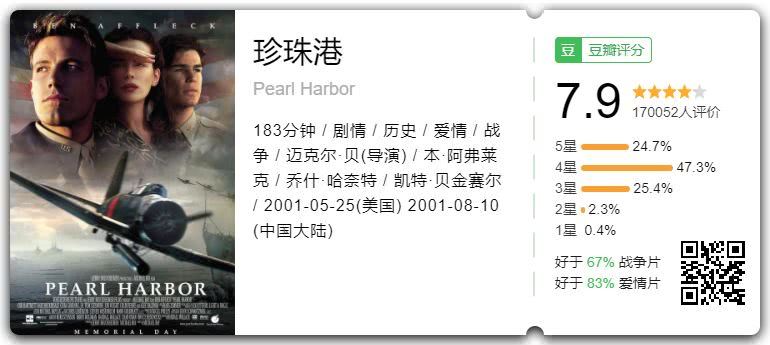 虽然不能说《珍珠港》是一部烂片,因为它从服化道,摄影,剪辑,特效每个方面都要求极高。