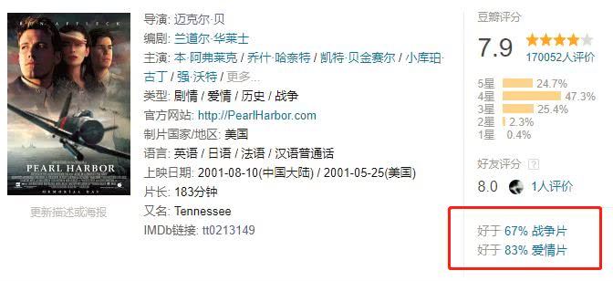 那就是该片作为一部战争片,只好67%的战争片,但却好于83%的爱情电影。