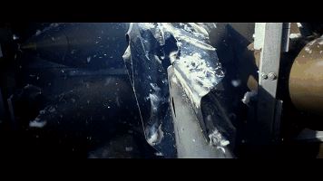 从投弹的第一视角直至导弹陷入船舱内,在静止几秒后,整个船被炸成两段。