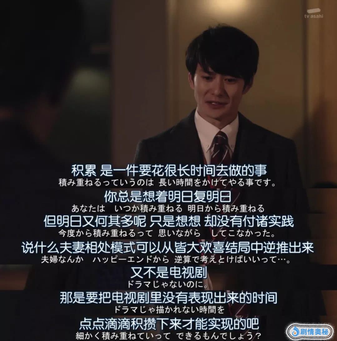 以及,还是特别佩服日剧在这里对婚姻的态度,并不是劝和,或是一味的大团圆。而是用一种很安静或是平和的态度,去探讨婚姻与情感,最终,还是让当事人与观众有所领悟。