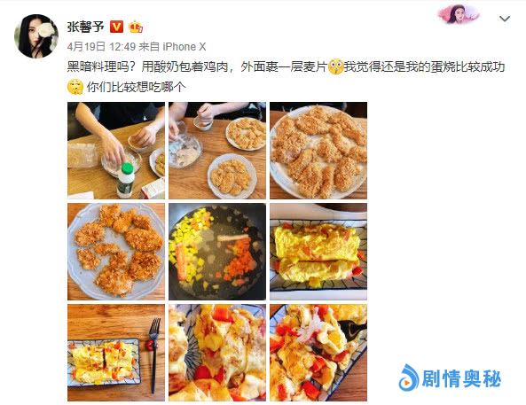 从微博中也能看出,婚后两口子相当低调,张馨予经常更新微博,但极少涉及工作,往往都是做美食或分享一些生活中的趣事,看起来已经做好了相夫教子的准备。