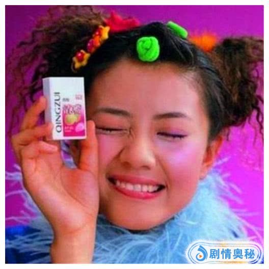 另外还有她代言清嘴含片的造型也让人不敢恭维。脸画成调色盘,粉红腮红跟各种绿发卡交相辉映,放在现在绝对是妥妥的乡村非主流。让大家不得不怀疑难道这就是当时的审美和时尚吗?看来我们现在真是在进步。