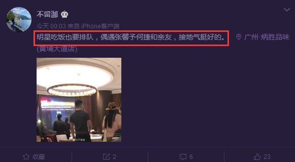 4月21号凌晨,有网友公布了偶遇张馨予何捷的照片,夫妻俩排队吃饭。爆料者表示当时没看到张馨予的大肚子,身体很瘦,疑似生完了宝宝。