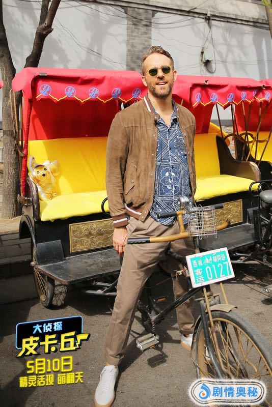 “小贱贱”瑞恩·雷诺兹为《大侦探皮卡丘》来华宣传,他在北京的胡同里体验了一把黄包车和北京小车。