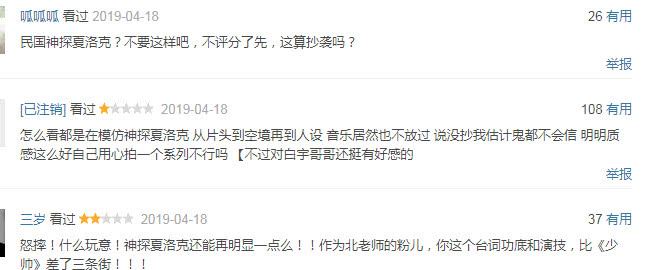 如此不错的网剧,不知道为何竟要模仿《神探夏洛克》。不仅是片中的音乐,就连镜头的拍摄在某些角度来看也神似《神探夏洛克》。