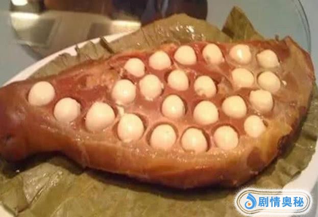 图三是玉笛谁家听落梅,这是洪七公在教郭靖武功的过程中,黄蓉所创建的一道美食,光是这个名字就已经让人兴趣大发了,而其中还是比较繁琐的,前前后后用了5种肉,并且融合到了一起,并且在这个其中,还有吃客中的状元含义,可以说是意义非凡