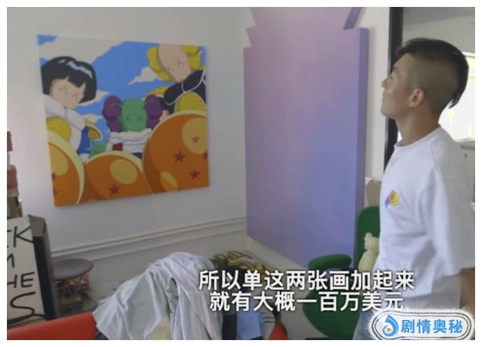 对于嘉宾的估值,陈冠希表示:应该不止一百万美元!镜头切换到另一个视角,陈冠希给观众介绍,光这墙上的两幅画加起来,大概就一百万美元了。其中紫色的那张出自艺术家Aelx Israel,他的作品可是被MOCA、MoMa等世界顶级的博物馆收藏的,足以可见其价值有多高。
