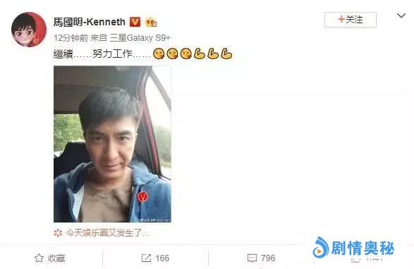 4月22日,马国明在微博po出自拍,并写道:“继续……努力工作……”疑似已经放下了一切。