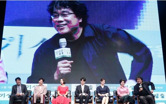 4月22日上午,电影《寄生虫》(导演:奉俊昊)制作报告会在首尔中区小孔洞德韦斯朝鲜举行。当天,奉俊昊导演,宋康昊、李善均、赵汝贞、崔宇植、朴素丹、张慧贞等出席了发布会,并谈起了电影相关的故事。