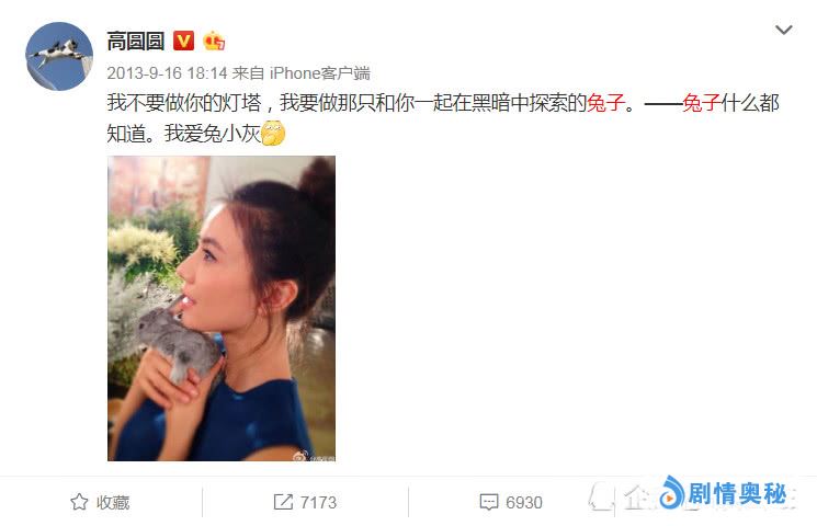 赵又廷在采访时表示这只兔子对自己很重要,算是自己和高圆圆的信物,婚礼上用的最多的就是兔子元素,而翻看高圆圆的微博也能看出来,高圆圆曾经发过一篇微博,应该就是发给赵又廷的:“我不要做你的灯塔,我要做那只和你一起在黑暗中探索的兔子。兔子什么都知道,我爱灰小兔”!所以赵又廷会如此在意兔子,就是这个原因了!由此可见赵又廷是有多爱高圆圆!
