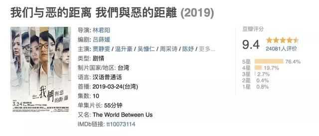 最近又和HBO合作,推出一部表现人性之恶的高分剧《我们与恶的距离》,前两天刚更新完毕,豆瓣9.4分,基本锁定今年最佳华语剧的宝座。