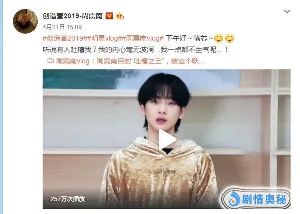 《创造营》中,周震南目前处于一位,虽然看起来像个小孩,但在众多“回锅肉”中也算综合实力比较好的选手。