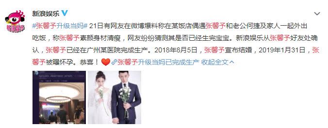 4月21日有媒体爆料张馨予已经在广州某医院生产,但张馨予被人并没有对此进行任何的回应,而“张馨予升级当妈”也是成为了热搜榜的首位,可见吃瓜群众对张馨予的事情有多关心。