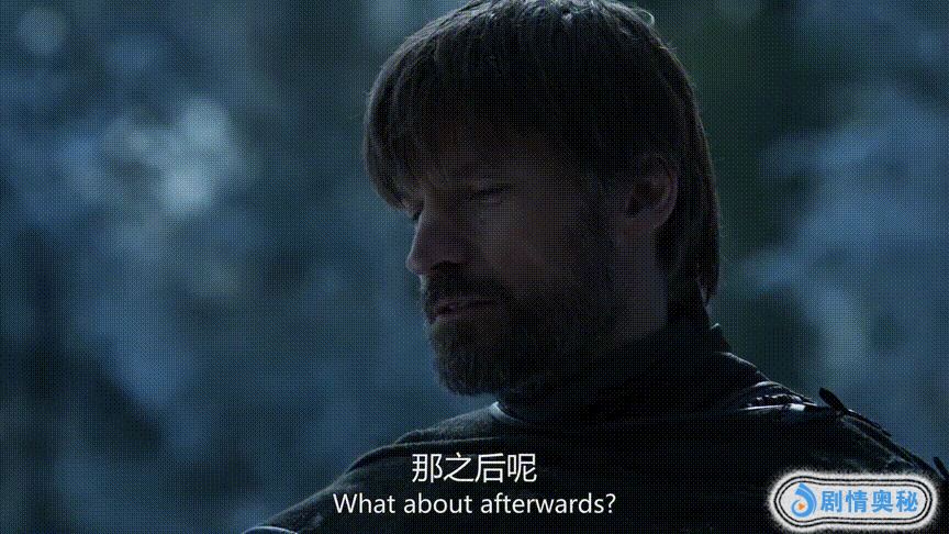有的事关“放下”:被詹姆推下高塔而改变命运轨迹的布兰登,再度与詹姆面对面时已然超脱,半身脱离六道情欲的他格局已经不再局限于个人的恩怨情仇,在活人的生存问题之前,所有的私人恩怨都已经微不足道。