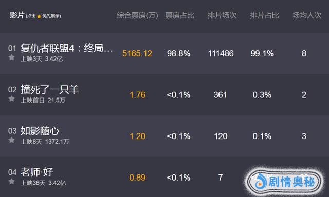 而其他的同时上映的电影,都是被挤到了夹缝中,毫无生存的机会。
