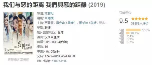 《我们与恶的距离》播完了10集后,豆瓣评分飙到了9.5分,是近年来难得一见的高分华语剧集。