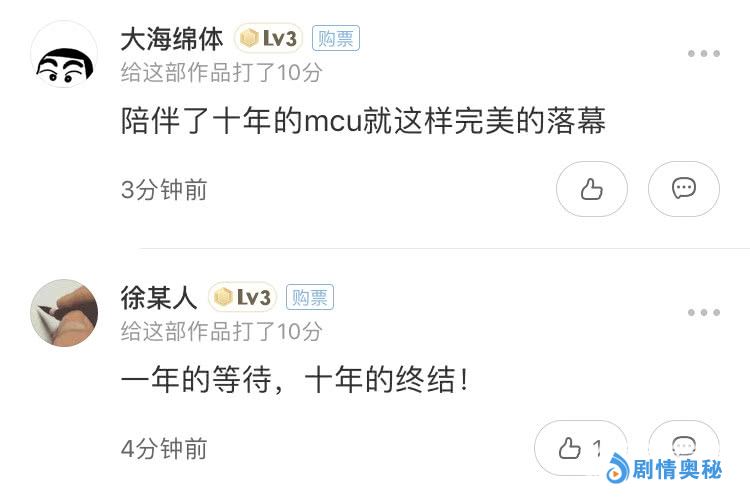 《复仇者联盟4:终局之战》毕竟是漫威十年的总结篇,他已经不仅仅是一部商业大片,而成为所有观众和粉丝的一种情怀。漫威十年经典辉煌一刻!期待下一个十年!