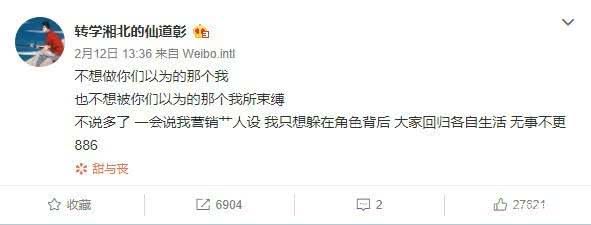 说实话这样的用词表达,就算是普通人写的,看了都觉得不适。更何况还自来一个公众人物,既想当好演员,平时又想放飞自我,一点都不懂得如何约束自己的言语,就算再红也会糊的。