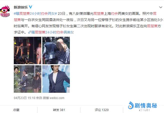 紧接着23号就有媒体爆料屈楚萧24小时内在上海约会两美女,先是和白衣女子回酒店共处一夜,之后又与另一位穿格子衫女生往某小区独处3小时后离开,这些照片拍的很清楚,屈楚萧的正脸直对镜头,想否认也来不及了。