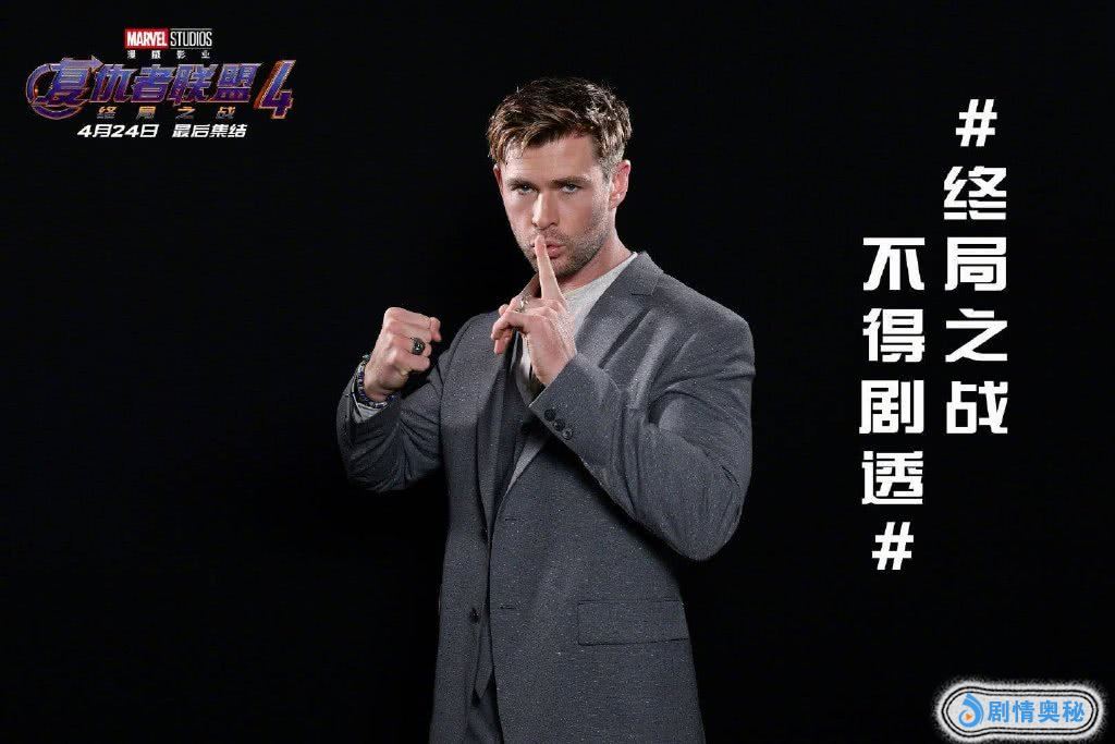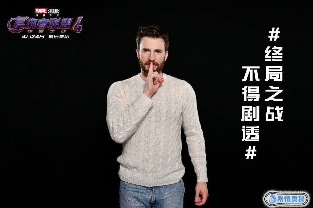 但是随之而来,“防剧透”也成了粉丝们的头等大事。近日,漫威影业发布一组“不剧透”海报,由前不久来中国参加影迷盛典的“美队”克里斯·埃文斯、“雷神”克里斯·海姆斯沃斯、“蚁人”保罗·路德、“鹰眼”杰瑞米·雷纳、导演罗素兄弟以及漫威CEO凯文·费奇共同做出“嘘声”的姿势,并配文称“终局之战,不得剧透”,提醒影迷不要剧透。
