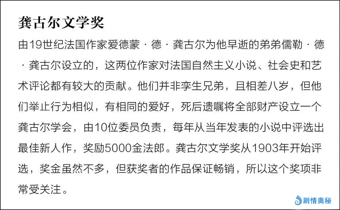 2013年,这部小说荣获法国的龚古尔文学奖,这是法国文学界的最高奖项。