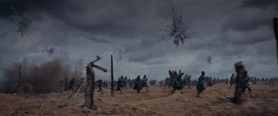 在电影开头,有一段极长的航拍镜头,以上帝视角,带观众俯瞰这片土地,布满了炮弹炸出的窟窿。