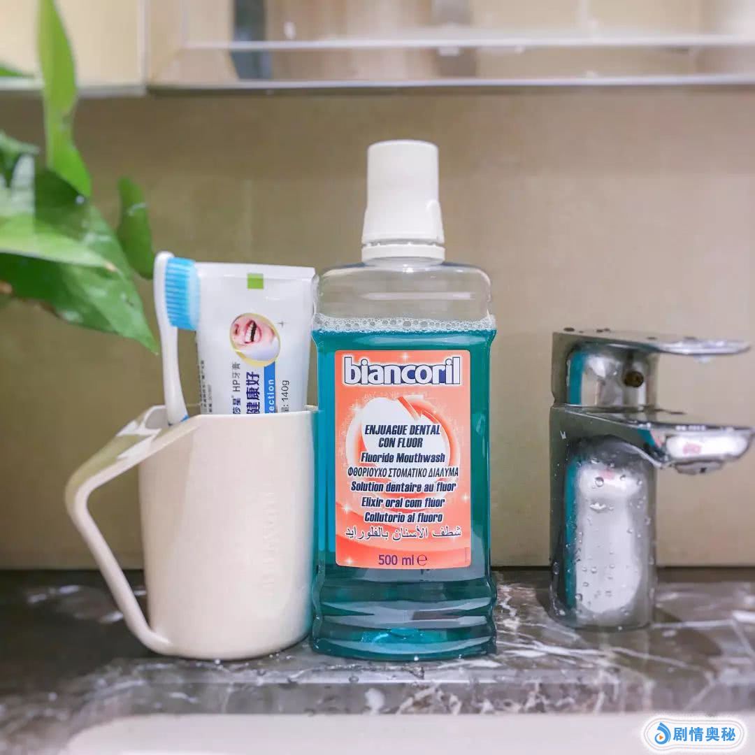 接着把漱口水含进口中