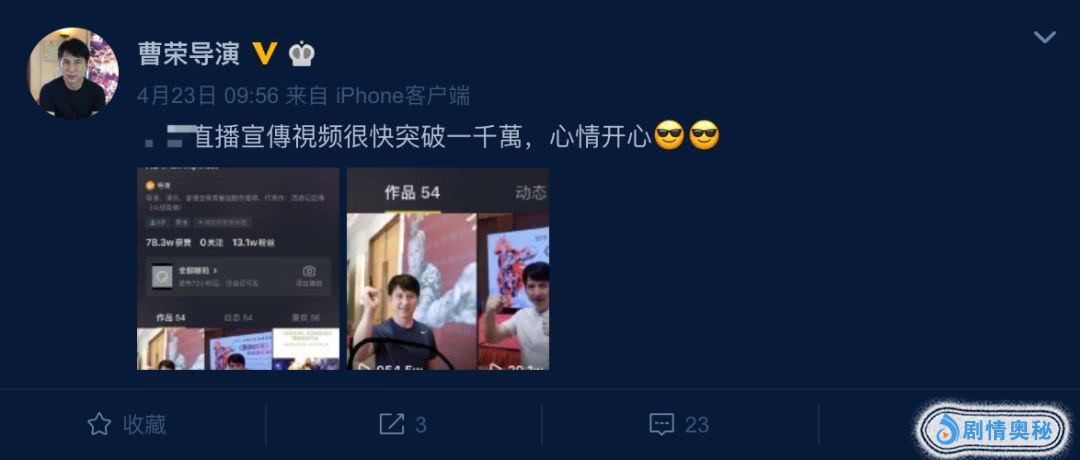 曹荣虽然出演反派较多,但他在现实中却是一位极为和善的人,经常在社交媒体上与影迷做视频互动,最近,他还在某社交平台上做了一场网络直播,播放量突破了一千万。他在直播中回答了很多影迷的提问,其中包括他是怎样走上演艺之路的、他到底是“成家班”成员还是“洪家班”成员等等。