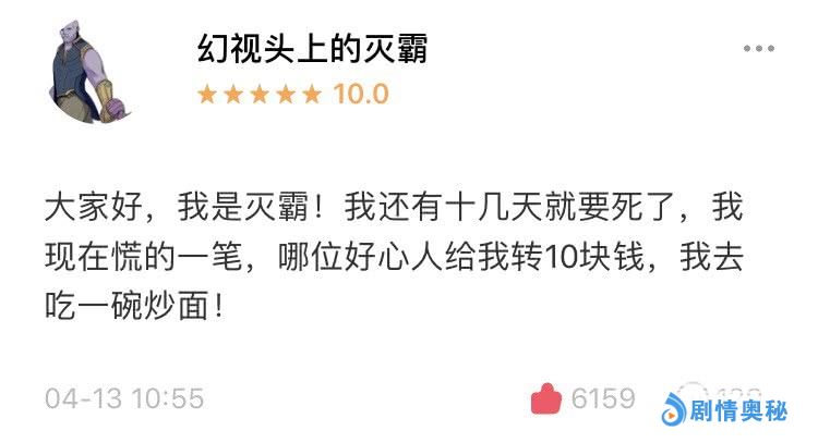 震惊!灭霸惊现向网友索要炒面以赴黄泉!