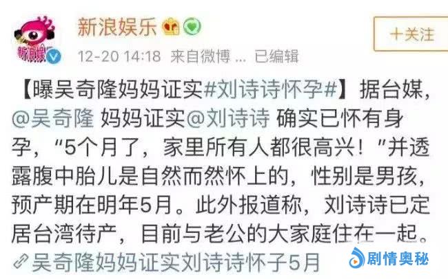 12月20日也就是1220,576(吴奇隆)+644(刘诗诗)=1220(宣布怀孕日子),也是有心了!