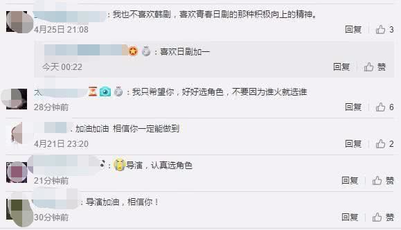 有网友表示好好选角角,不要因为谁火就选谁,认真选角色,相信你,导演加油。说实话经典剧翻拍能赶上原著的很少,导演这么一喊话,原本期待能赶上泰国剧,现在只希望不要大改剧本,千万别画蛇添足,好好选角,好好按原著拍,就好了。