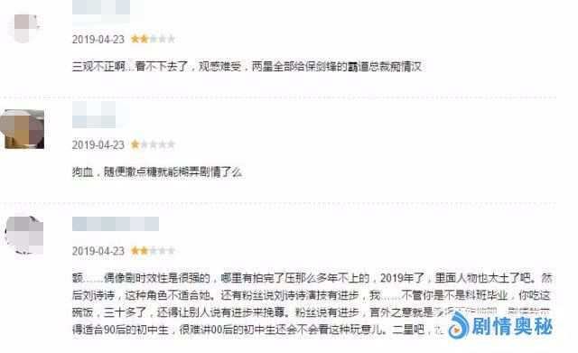 当然了一部剧光靠颜值来撑收视率不太现实,这部剧5.3的评分,还有一部分来自于剧情太过儿狗血。