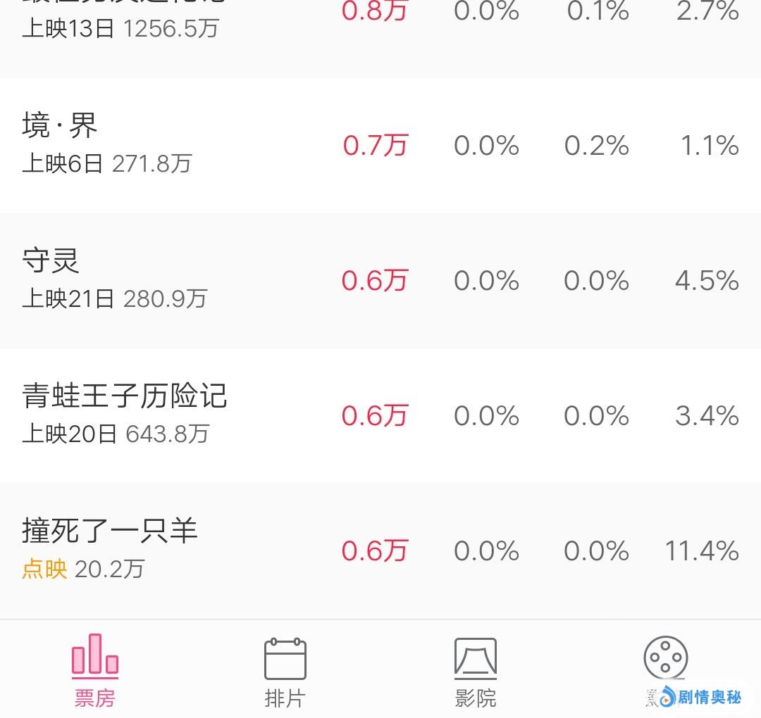 4.25是《复联4》上映的第二天,目前它的票房也来到了10亿。而这一天则是《一只羊》上映的首日。原以为《一只羊》也会有个不错的成绩,毕竟王家卫是名导,但没想到《一只羊》当天的票房却为零。当天院线不仅没有给它排片,相反还直接把它给下架了。而《一只羊》最终的票房就只是停留在4.24那天的点映20万。