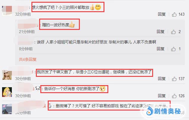 即使对方删除了微博,可是吃瓜群众还是不放过这位小演员,甚至有网友讽刺说她想火想疯了!