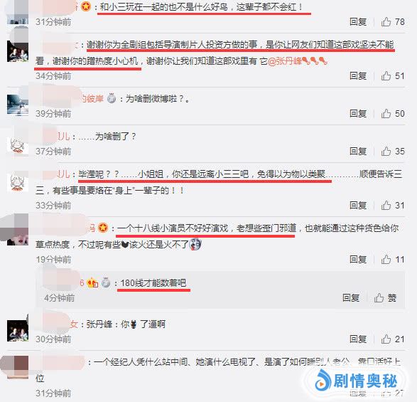 这位不太出名的女演员被骂惨了,不少网友纷纷围攻她,评论区都是指责女演员的内容,不少人辱骂说:这辈子都不会红!你还是远离小三吧,免得以为物以类聚!一个十八线小演员不好好演戏,老想些歪门邪道蹭热度!180线才能数着吧!
