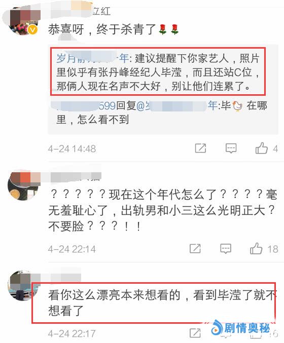 有网友炮轰说张丹峰是个渣,对方立刻回应:没有真正了解他人,不要道听途说嘛。同剧组女演员赵儒嫣也晒出《勇者无惧》杀青照片,配文感谢大家照顾和帮助,但是在照片中出现了张丹峰经纪人毕滢的身影。