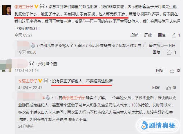 对方向网友解释: 愿意来到咱们博里的都是朋友,我们非常欢迎,表示感谢!至于张丹峰先生他到底做了什么,触犯了什么,国有国法,家有家规,他人都无权干涉。若是你很喜欢多事,请不要在我们这里来找事,我再重复一遍,若是你再来这里严重辱骂他人,我们会用法律形式来捍卫我们的权利。