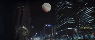 月亮之下,是灯火辉煌的首尔街头。