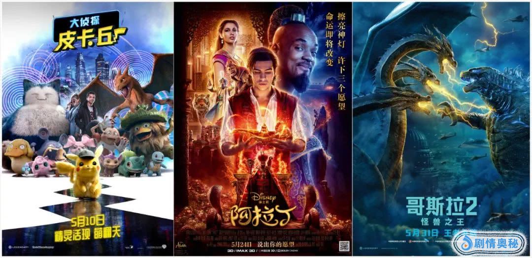 整个5月的市场大盘,将很有可能上演由《大侦探皮卡丘》《阿拉丁》和《哥斯拉2:怪兽之王》三分天下的局面。