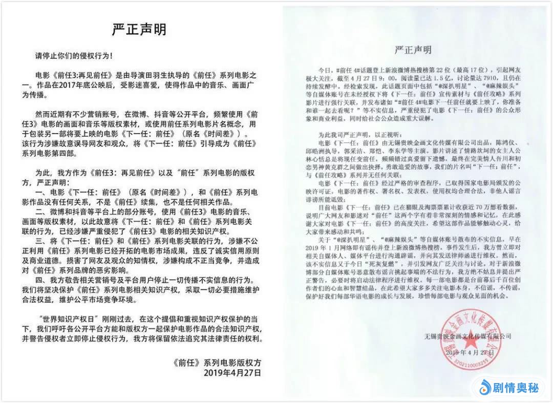 等到正牌《前任》系列片方发布声明澄清,本片又声讨某些自媒体账号强行把两个片子关联在一起,这一波操作实在妙。