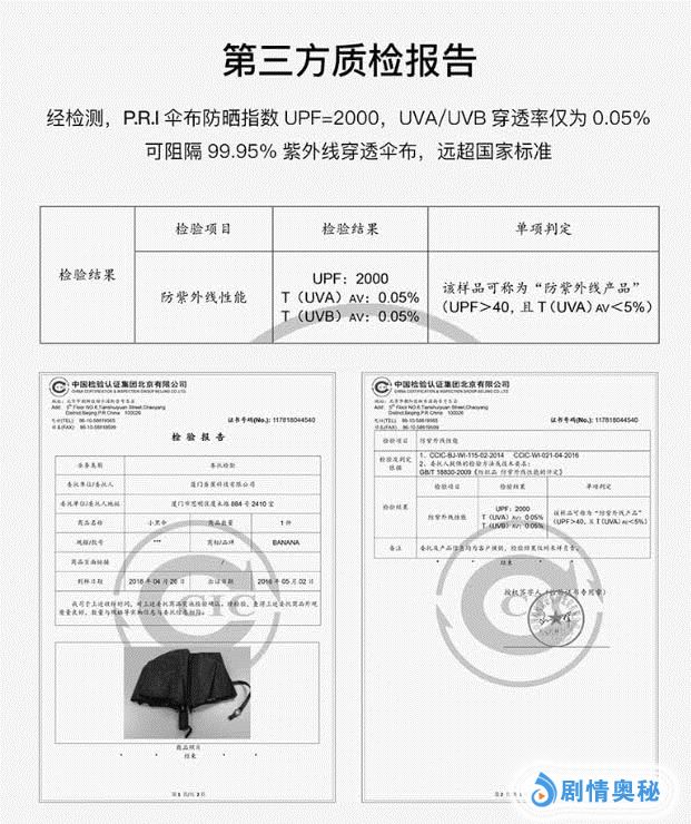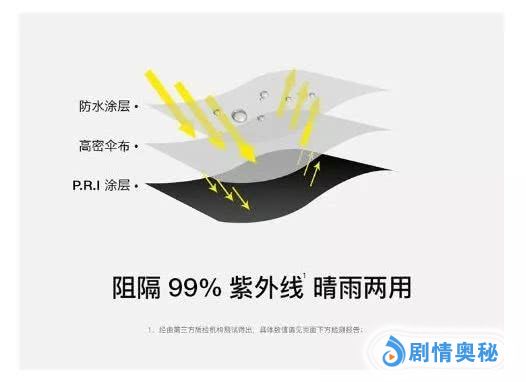 BANANA的口袋伞能有这么高的紫外线阻隔率,得益于两点。