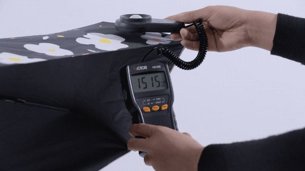 先做个简单的测试,就是透光率。这个原理很简单,密不透光的伞布就像一个屋檐,就和你躲在室内接受的紫外线少,是一个道理。这也是防晒伞最基本的。