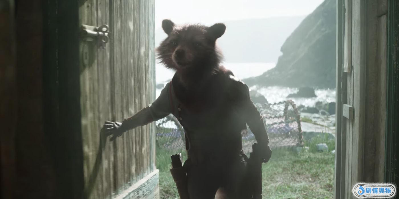 我们在电影中看到,火箭浣熊和绿巨人前往新阿斯加德寻找雷神加入对决灭霸的战斗。预告片也包含了电影这一部分的一个镜头:火箭浣熊进入了雷神黑暗模糊的小屋。然而在电影的正片里,并不是只有火箭浣熊一个人,还有着绿巨人。漫威为了隐藏绿巨人教授对这一场景进行了数字编辑。