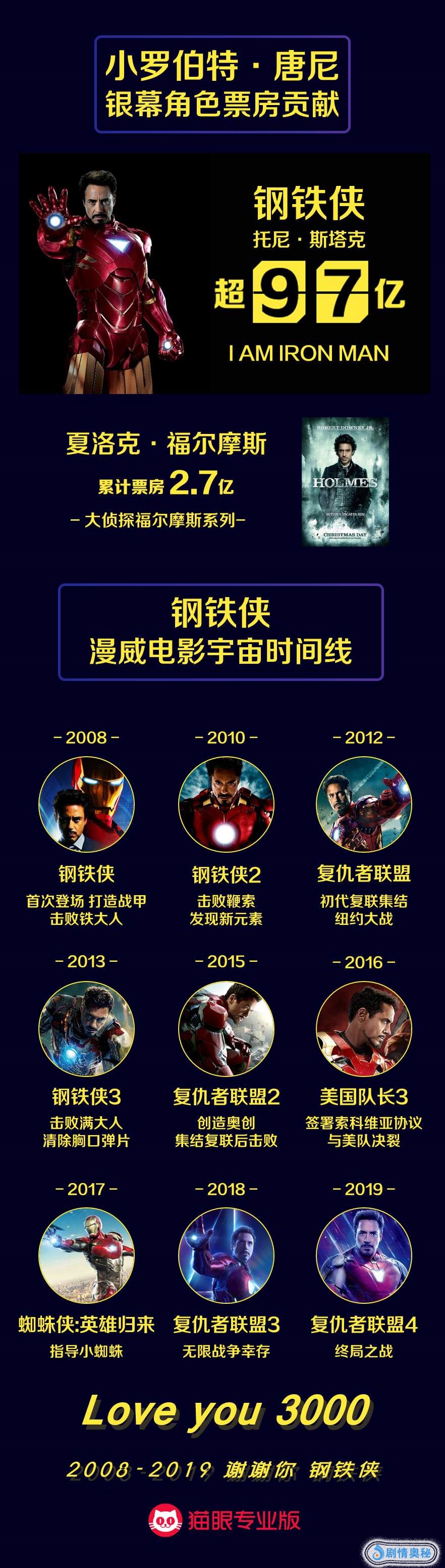 另一个角色就是著名的钢铁侠了,从2008年的《钢铁侠》开始,他在《复仇者联盟》系列、《美国队长3》、《蜘蛛侠:英雄归来》等大量漫威电影中出现,是漫威顶梁柱式的角色,这也为他获得了累计超97亿元的票房!