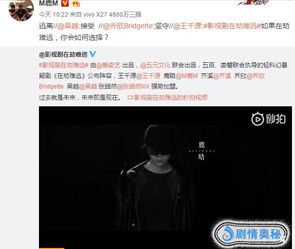 从鹿晗这次接《在劫难逃》这部网剧的男二号来看,他是沉下心要从小鲜肉转型了,也满足了一直心心念念想演反派的小愿望,期待他在这部剧中的精彩表现。(原创文章,禁止转载,图片来源网络)