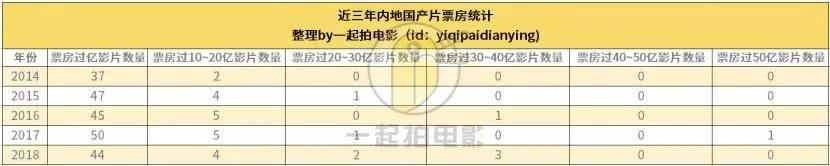 以近五年国产片的票房为例,这几年10亿影片数量的不断增加以及20亿、30亿甚至50亿票房的影片的不断出现,这也在说明国产片在头部影片的生产上依然在增强。